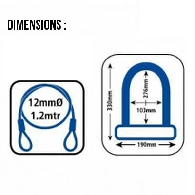 Sa bonne flexibilité, sa longueur de 120cm et son antivol de type U rigide en font un atout de protection essentiel et complet. La fermeture fonctionne avec une clef. Trois sont fournies à l’achat de l’anti-vol. Une attache universelle pour cadre de vélo est également fournie. Vous trouverez en option une fixation U sur guidon de vélo qui permet d’attacher votre anti-vol sur le guidon de votre vélo.