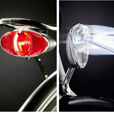 Le phare avant est un feu allumé en continu et le feu arrière est clignotant lorsque l’on pédale. Il s’éclaire au premier tour de pédale, de jour comme de nuit. De plus, le feu arrière continue de clignoter pendant trois minutes lorsque l’on s’arrête grâce à un condensateur.