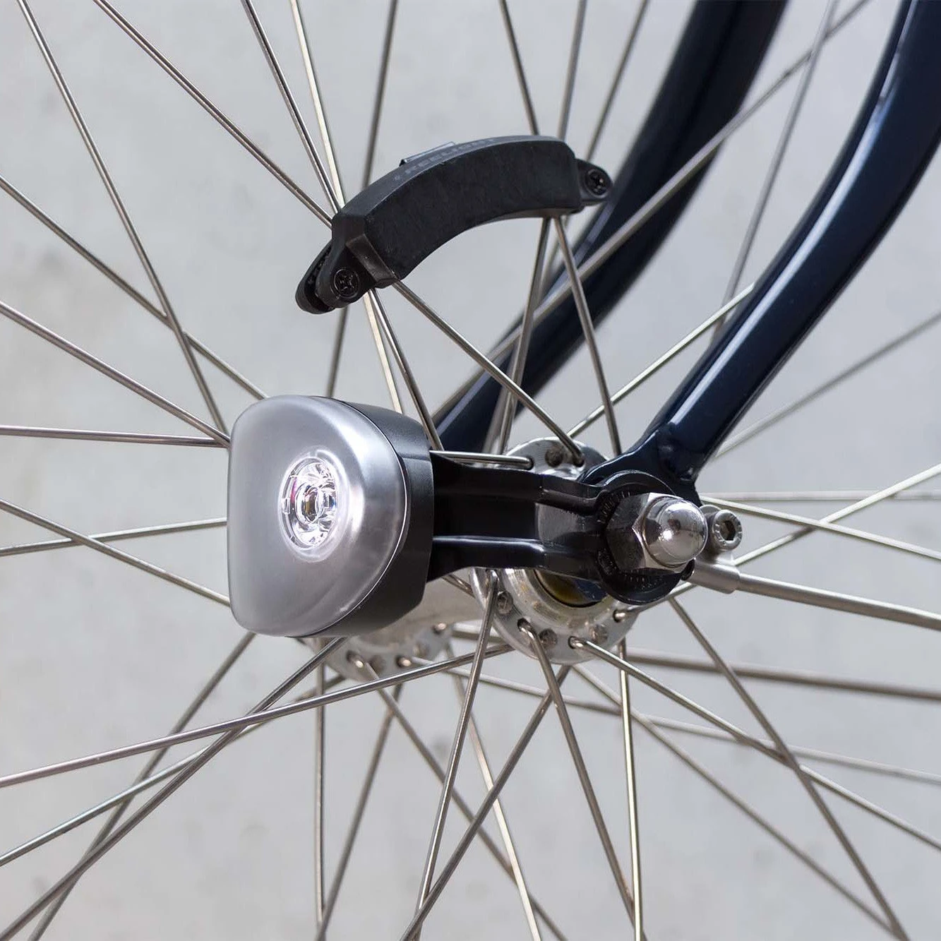 Les feux de signalisation se fixent au niveau du moyeu de la roue. Les aimants vont sur les rayons. Ils ne conviennent pas avec des vélos à freins à disque. Compact, sans pile ni batterie, le système, garanti 2 ans, est complètement imperméable et ne nécessite aucun entretien. Sans contact direct avec la roue, il n’y a pas de frottements et donc aucune perte d’énergie contrairement à l’utilisation d’une dynamo.