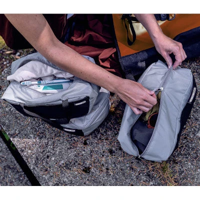 Le set de poches intérieures modulaires pour sacoches de vélo Ortlieb sert à ranger et d’organiser de façon simple et efficace tout son matériel de bikepacking, rando et bivouac dans les sacoches Ortlieb adaptées. Avec une devise « trouvez au lieu de chercher », Ortlieb propose en effet aux cyclistes randonneurs et baroudeurs un système de rangement pratique pour partir à l’aventure à vélo. Les trois poches, à utiliser ensemble ou séparément selon la durée de votre excursion, permettent de ranger vêtements, vaisselles de camping, trousses de secours et autres petites affaires qui ont souvent tendance à glisser et se perdre dans les grands compartiments des sacoches.